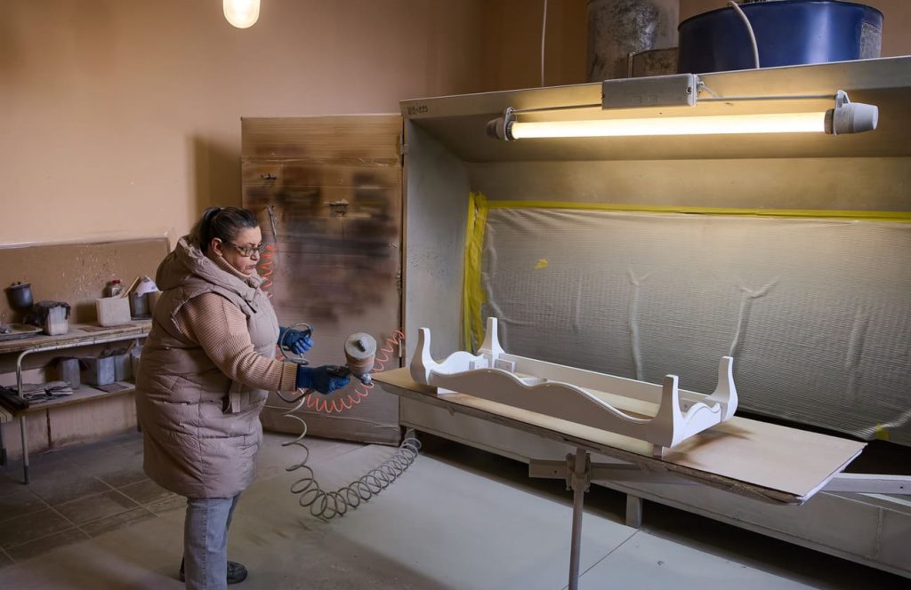 Оксана Греченко починала підсобною робітницею, виконувала дрібний ремонт деталей і усувала косметичні недоліки на завершальному етапі виготовлення меблів. Але з початком повномасштабного вторгнення на виробництві забракло робочих рук: «Вийшло так, що взагалі нікому було працювати. Хлопців не лишилося взагалі, тож мені запропонували стати за верстат».